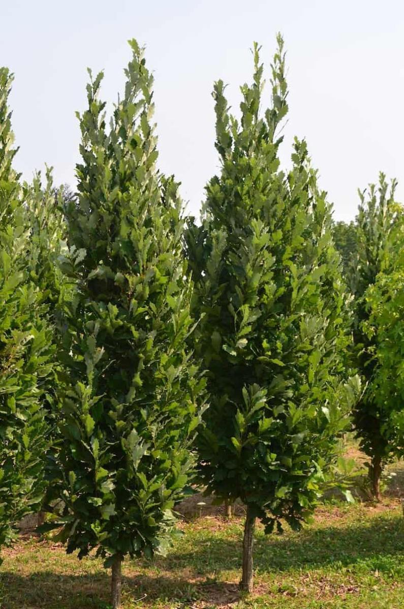 Demand for narrow/slender trees derived from a broad range of species has increased. Quercus, oaks, have generated more commercial fastigiate/columnar selections than any genus. ‘Birthday Candle’, ‘Chimney Fire’, Crimson Fire™ (‘Crimschmidt’), Green Pillar®(‘Pringreen’), Skinny Genes® (‘JFS-KW2QX’), ‘Scarlet Letter’, Streetspire® (‘JFS-KW1QX’)’), Urban Pinnacle® (‘JFS-KW3’) and ‘Windcandle’, plus the three previously mentioned, are commercially available.