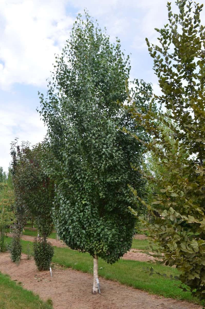 Betula platyphylla Parkland Pillar™ (‘Jefpark’) is narrow columnar with dark green foliage that turns yellow in the fall. Listed as Japanese beetle resistant. 30’ by 8’. Zone 3. Definitively a cold climate tree and probably not suitable below zone 6. (7. below)