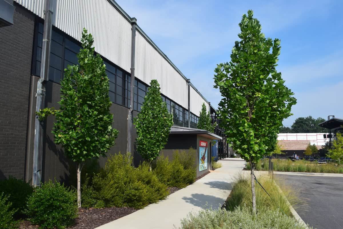 Taxodium distichum Shawnee Brave® (‘Mickleson’) raised the bar for upright trees to emulate. Discovered and introduced by the late Earl Cully, Jacksonville, IL, who championed improved native tree species years before they became the norm. Although introduced over 60 years ago, it is still recognized as the gold standard of fastigiate-pyramidal trees. Sage green summer foliage becomes rusty orange in fall. The beautiful gray to reddish brown bark sloughs in strips and slivers, providing year-round beauty. The species is adaptable to wet as well as drier soils and hardy from zone 5 to10. 50-75’ high and 15-20’ wide. At Milliken Research, Spartanburg, SC, an allée was planted in early 2000. Trees are now 50’ high with no sign of slowing. (16., 17., and 18. Photos below)