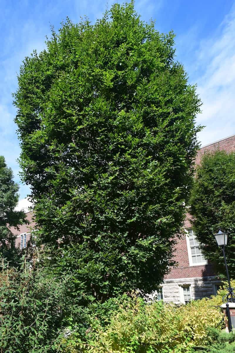 The above selections are commercially available and reliable performers. Many other fastigiate/columnar cultivars are nested in the deciduous tree genera Celtis, Chionanthus, Cornus, Ginkgo, Gymnocladus, Koelreuteria, Magnolia, Malus, Metasequoia, Nyssa, Parrotia, Populus, and Prunus. Needle evergreen genera Abies, Calocedrus, Cedrus, Picea, Pinus, Thuja, and Tsuga are home to fastigiate/columnar cultivars. My long-term goal is to assemble an inventory/checklist of these cultivars coupled with their availability in U.S. commerce.