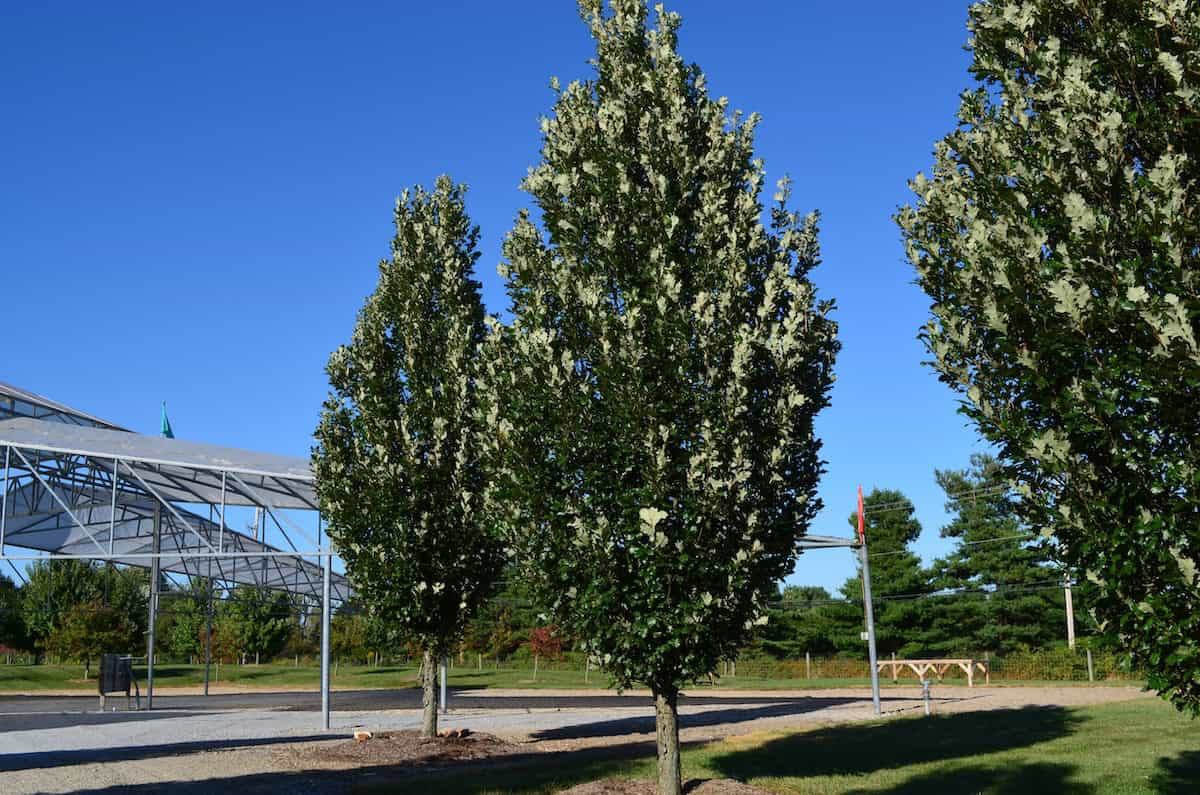 Demand for narrow/slender trees derived from a broad range of species has increased. Quercus, oaks, have generated more commercial fastigiate/columnar selections than any genus. ‘Birthday Candle’, ‘Chimney Fire’, Crimson Fire™ (‘Crimschmidt’), Green Pillar®(‘Pringreen’), Skinny Genes® (‘JFS-KW2QX’), ‘Scarlet Letter’, Streetspire® (‘JFS-KW1QX’)’), Urban Pinnacle® (‘JFS-KW3’) and ‘Windcandle’, plus the three previously mentioned, are commercially available.