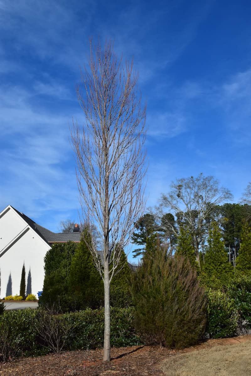 The above selections are commercially available and reliable performers. Many other fastigiate/columnar cultivars are nested in the deciduous tree genera Celtis, Chionanthus, Cornus, Ginkgo, Gymnocladus, Koelreuteria, Magnolia, Malus, Metasequoia, Nyssa, Parrotia, Populus, and Prunus. Needle evergreen genera Abies, Calocedrus, Cedrus, Picea, Pinus, Thuja, and Tsuga are home to fastigiate/columnar cultivars. My long-term goal is to assemble an inventory/checklist of these cultivars coupled with their availability in U.S. commerce.